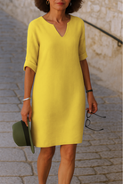 Sind Sie es leid, dass Kleider an den falschen Stellen spannen oder nicht richtig sitzen? Dann ist das Elvy-Kleid mit V-Ausschnitt genau das Richtige für Sie. Dieses Kleid wurde entworfen, um Ihnen eine schlankere Silhouette zu verleihen, Bauchspeck mühelos zu kaschieren und Ihnen gleichzeitig höchsten Tragekomfort zu bieten, da es weich, atmungsaktiv und leicht ist. Verabschieden Sie sich von Ihren Kleidungsproblemen und begrüßen Sie Ihr neues Lieblingskleid!