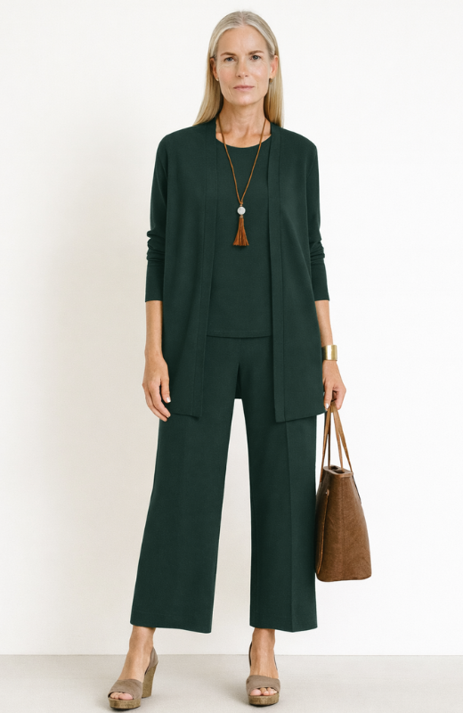 Stellen Sie sich vor, Sie besitzen endlich ein anspruchsvolles Set, das Sie kühl und trocken hält und gleichzeitig nach jeder Wäsche seine makellose, schmeichelhafte Form behält. Das dreiteilige Marixia-Set ist die ultimative Lösung für die moderne Frau. Es bietet mühelosen Stil und die Vielseitigkeit, die Sie sich wünschen, und sorgt dafür, dass Sie immer gepflegt und perfekt gekleidet aussehen – ganz ohne den Frust, dass Problemzonen unvorteilhaft betont werden.